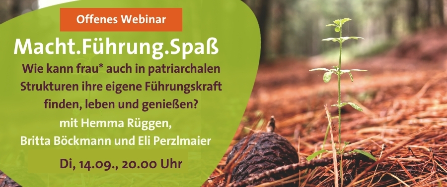 Wenn du diese Fragen gemeinsam mit uns erkunden möchtest, dann komm zum nächsten Webseminar für (Führungs-)Frauen* mit unseren Impulsgeberinnen. … weiterlesen»