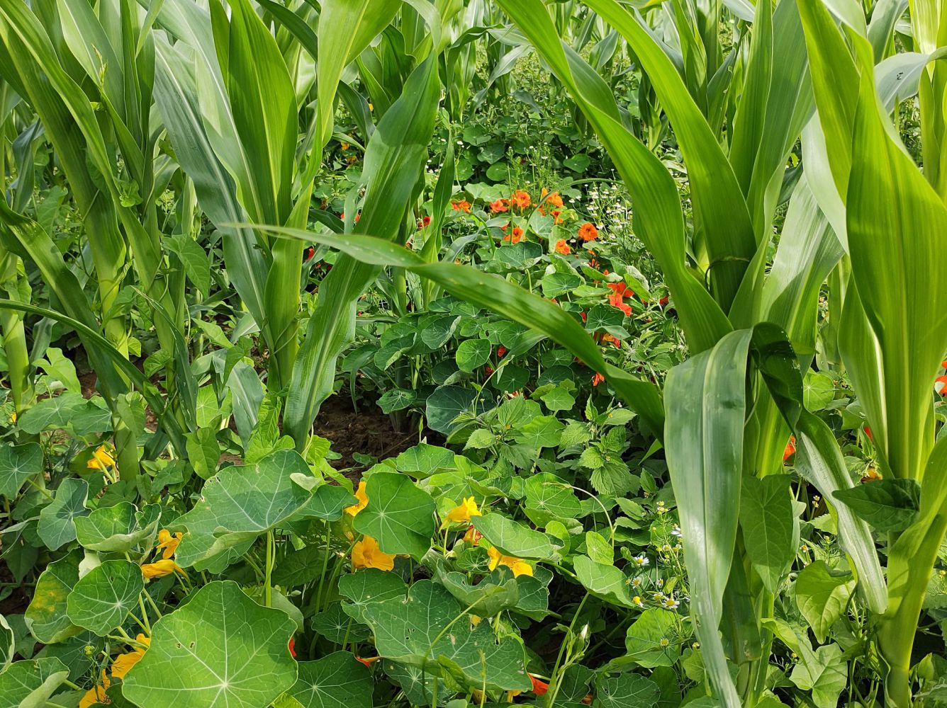 Mais-Bohnen Mischkultur Blühstreifen -, Lerchenfenster, blühende Untersaaten im Getreide – mit diesen und weiteren Ma nahmen wird hier versucht auf einem ansonsten konventionell wirtschaftenden Betrieb die Biodiversität